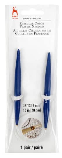 These needles are made of plastic and have concave points to prevent splitting of yarn and dropped stitches. Available in multiple sizes . 16" (40 cm) long