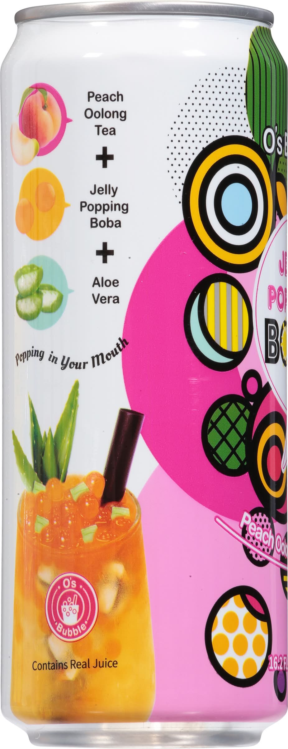 O's Bubble Jelly Popping Boba Tea, Peach Oolong & Aloe Vera (16.2 fl oz)