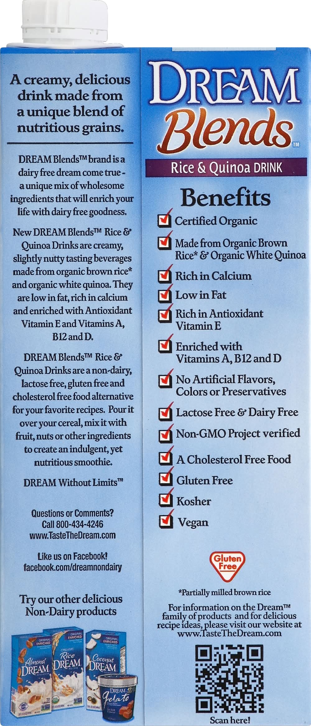 Dream Blends Enriched Rice and Quinoa Milk, Unsweetened (32 fl oz)