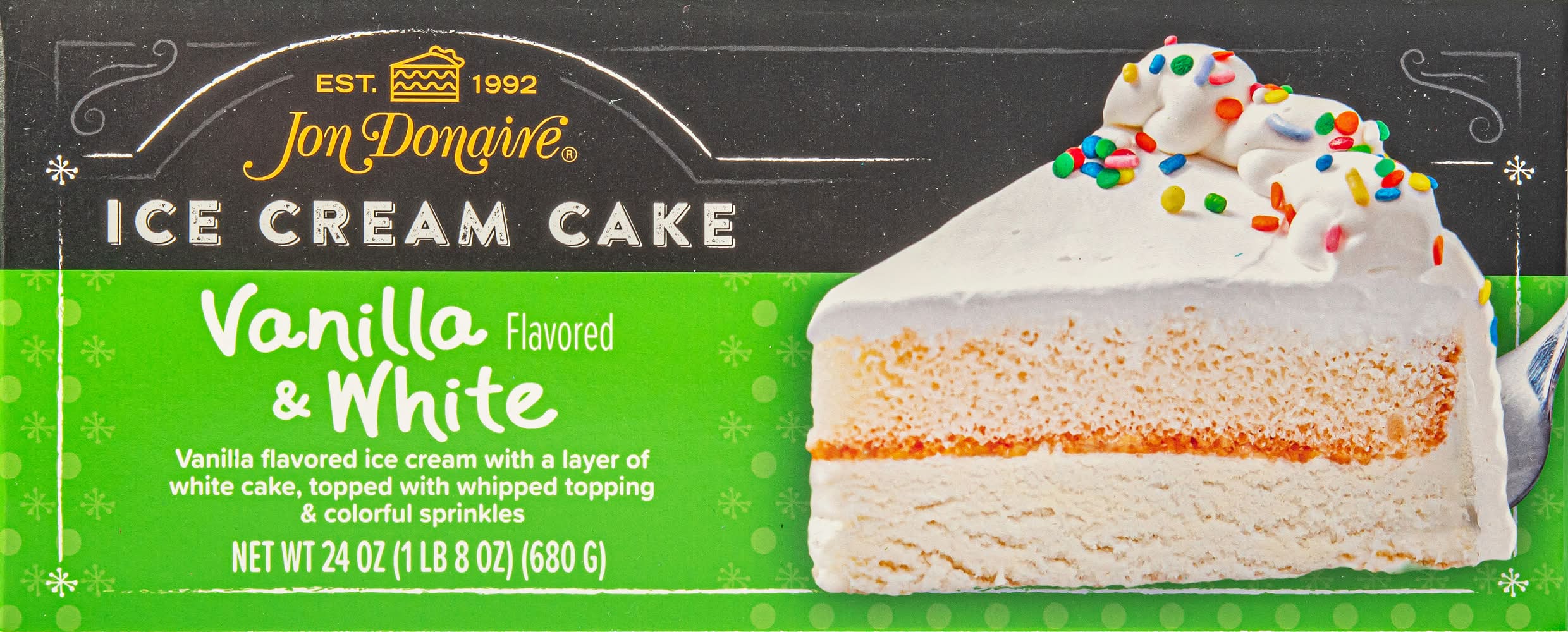 Jon Donaire Ice Cream Cake, Vanilla-White, 8 in (24 oz)