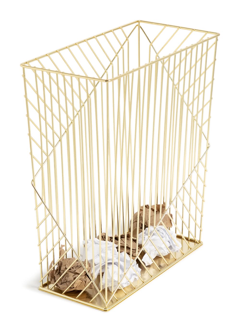 Les Produits U Vena Wire Metal Waste Basket, Gold