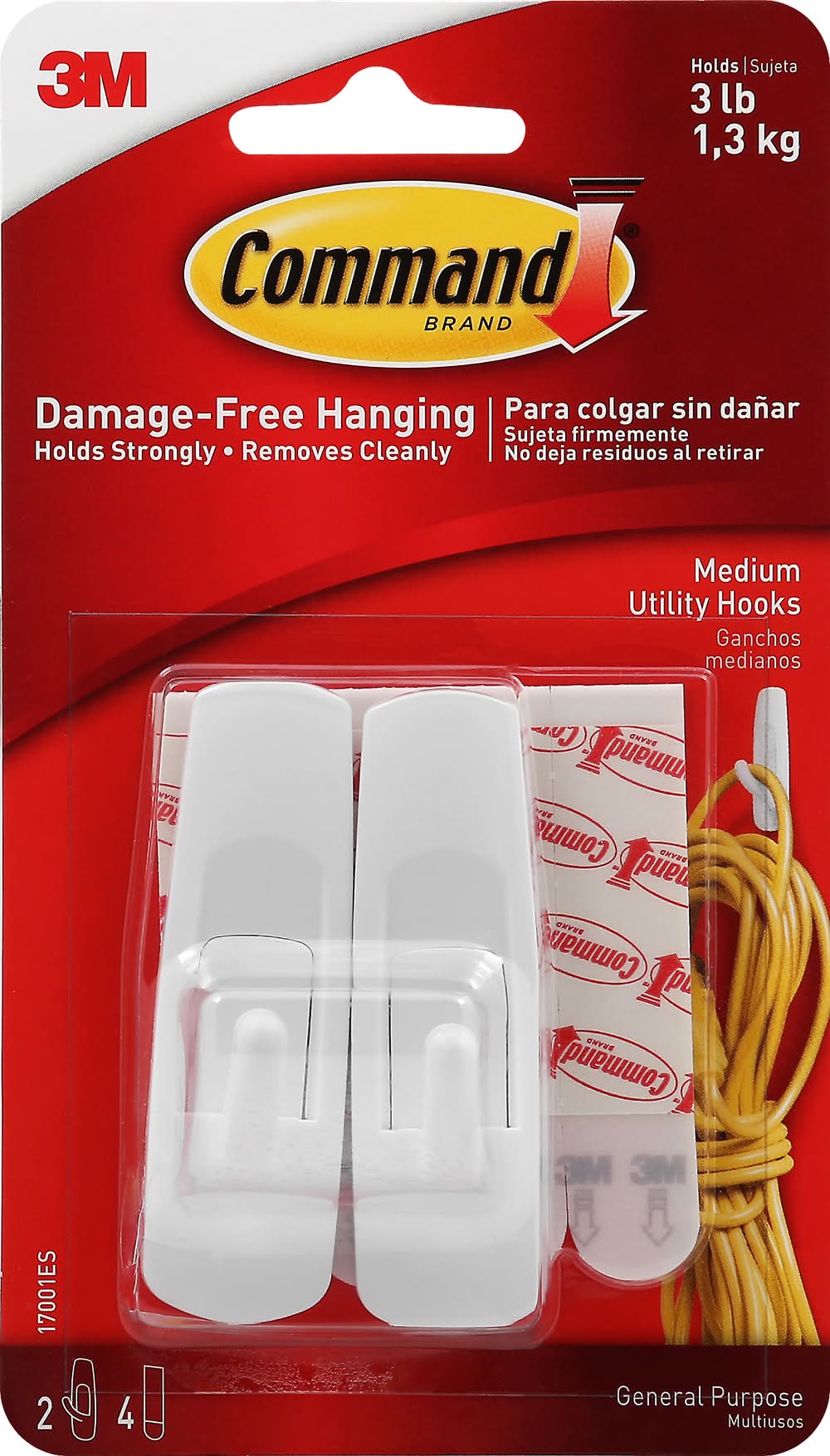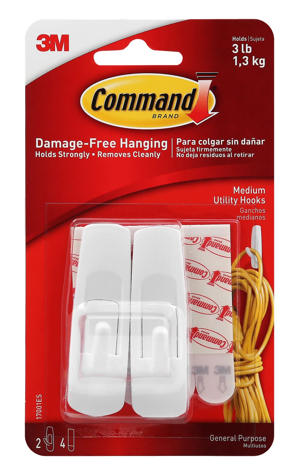 Command Damage-Free Hanging Utility Hooks, Medium (1.6 oz, 2 ct)