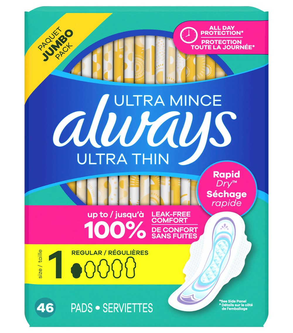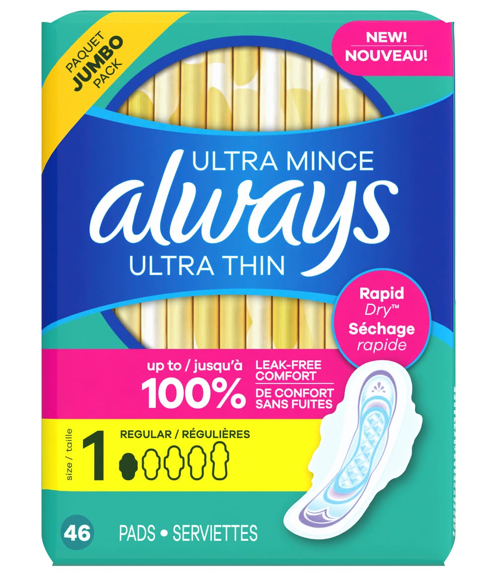Always Ultra Thin Flexi-Wings Jumbo Regular Pads, Size 1 (8 oz, 46 ct)