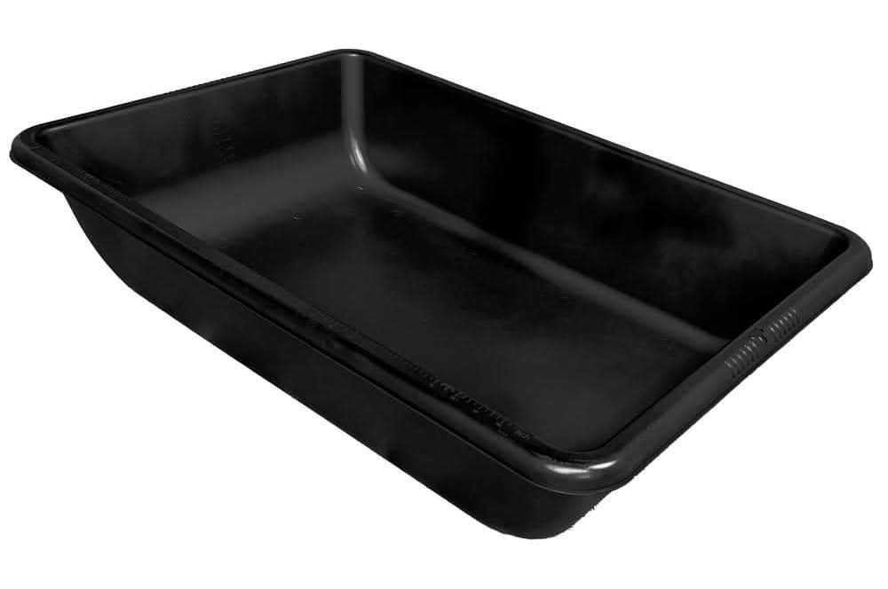 This multi-purpose 36 in. L x 24 in. W x 8 in. H Large Concrete Mixing Tub features a heavy-duty yet flexible plastic material. Great for mixing heavy materials such as concrete, grout or mortar for masonry and drywall mud. It has a large capacity for the completion of various projects and uses. It has slanted ends and a smooth interior finish for easy clean-up. Made from 100% clean pre-consumer recycled plastic. Liquid capacity is 20 gallons. Can hold up to 220 pounds. • Color: Black • Size: L