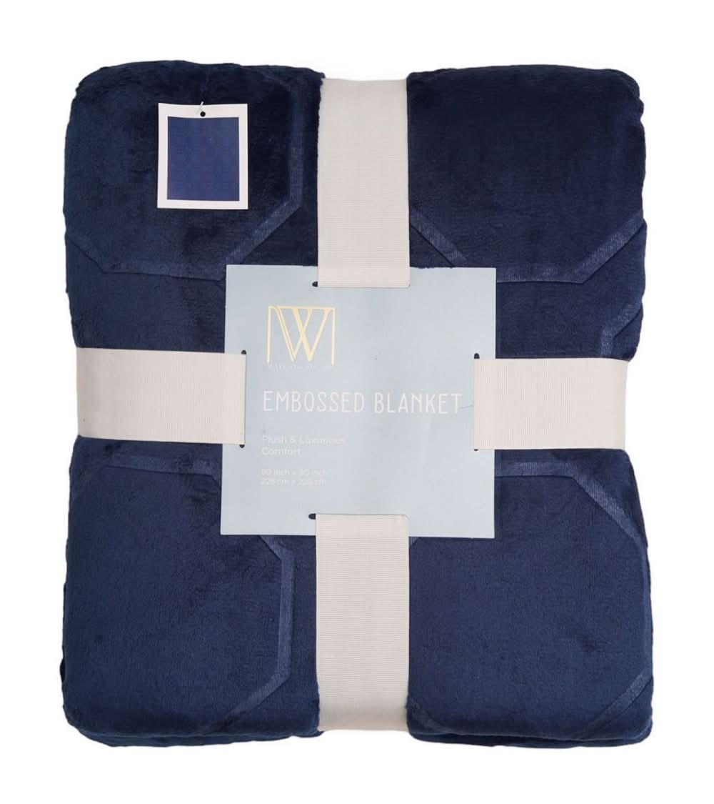 Wayland Square Embossed Plush Blanket, 90x90 in, Navy