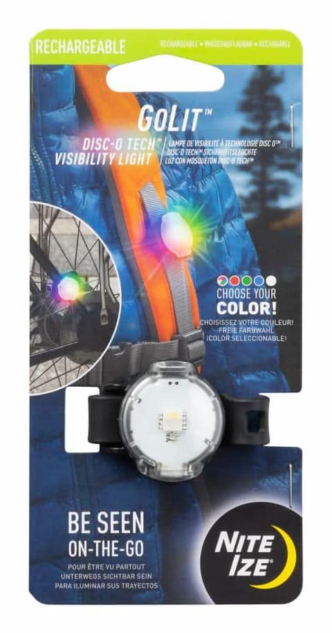 Nite Ize Golit Rechargeable Visibility Light With Disc-O Tech, 2.25 Inch , Assorted