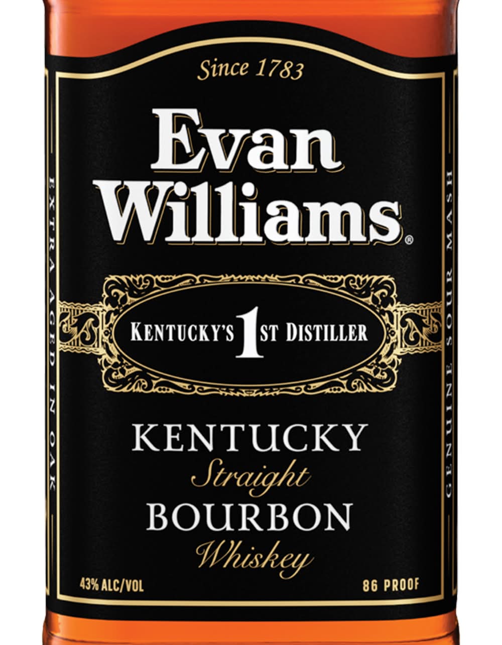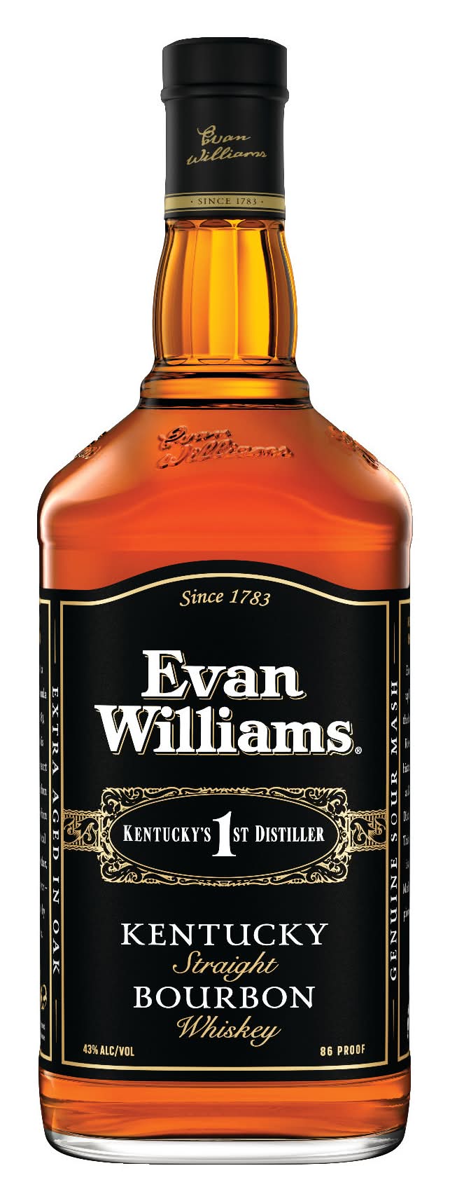 Our Kentucky Straight Bourbon is full of character and simply done right. Named after Evan Williams, who opened Kentucky’s 1st Distillery in 1783. Evan Williams Black is aged longer than required by law and bottled at 86 proof. The result is a Bourbon that is smooth, rich and easy to enjoy. Evan Williams is medium amber in color and has aromas of vanilla and mint with a taste of oak, brown sugar and caramel. Evan Williams is the selling Kentucky Straight Bourbon brand in the world. • Alcohol by volume: 43% • Old Evan Willams Distillery,