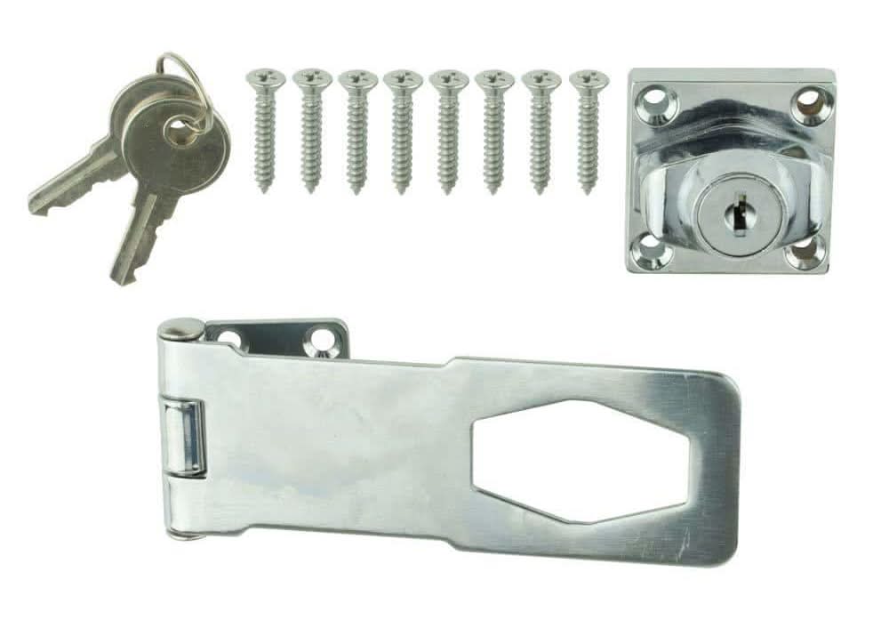 4-1/2 in. Key Locking Safety Hasp is ideal for doors, cabinets and gates. Features key lock for added security. Easy to install. This product can expose you to chemicals including Lead and lead components, which are known to the State of California to cause cancer and birth defects or other reproductive harm. For more information go to
