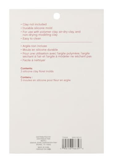 Featuring durable silicone material, these molds will last a long time, and they work with all kinds of clay. Floral designs. 5" x 6.75" x 1.5" (12.7cm x 17.1cm x 3.8cm) package size. Clay sold separately. Easy to clean. For use with polymer clay, air-dry clay and non-drying modeling clay. Color: Null
