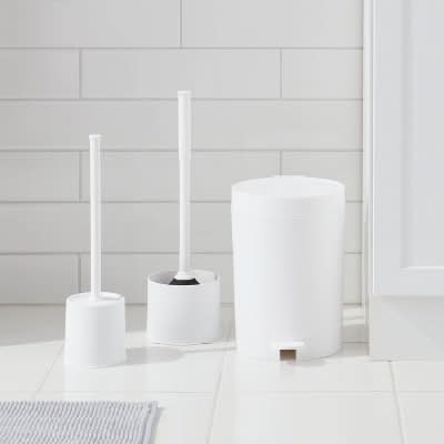 Help keep your bath space neat and clean with this Step Wastebasket . This wastebasket features an attached lid that helps keep the trash concealed, while the foot pedal makes opening the lid easy ensuring hands-free operation. Featuring a cylindrical silhouette, it features a solid white hue that blends with a variety of bath decor styles while helping your bathroom stays clutter free. • Color: White • Size: 12.33 in