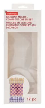 Find the Complete Chess Silicone Mold Set by Craft Smart at Michaels. These chess silicone molds are ideal for resin projects. To customize your creations, add glitter, powders, dyes and more! Clear . 17 pieces . 1 chess board: 10.7" x 10.7" x 0.31" (27.18cm x 27.18cm x 0.79cm) 1 king: 1.34" x 2.75" (3.4cm x 6.98cm) . 1 queen: 1.34" x 2.36" (3.4cm x 5.99cm) . 2 bishops: 1.34" x 1.97" (3.4cm x 5cm) Color: Null