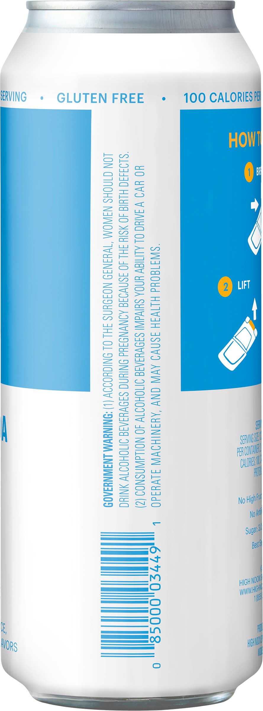 California- Hard Seltzer- 4.5% ABV. High Noon Sun Sips are made with the finest quality Midwest corn and distilled 5 times for smoothness. Real juice and natural flavors blended with vodka and sparkling water. Juicy Peach flavors. • Flavor: Peach • Alcohol by volume: 4.5%