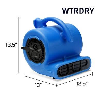 Dry light water damaged or just cleaned carpeting and flooring with the B-AIR Vent VP-25 Air Mover. The B-AIR Vent VP-25 Air Mover is ideal for use throughout the home. Providing powerful air circulation with a 1/4 horsepower motor. This smaller unit is ideal for homeowners, retail businesses, and contractors. With an easy to carry, ergonomic handle, the B-AIR Vent VP-25 Air Mover gives you the many of the benefits of larger blowers without the inconvenience of their size and weight. The B-AIR Vent VP-25 is daisy chain capable for up to five units, delivering a torrent of air to quickly dry a variety of flooring or odd jobs. With its 3 speed settings, the dryers can efficiently circulate up to 900 rated cubic feet per minute (Rated CFMs). Perfect for residential and retail, the B-AIR Vent VP-25 also is ideal for small contractor or service industry jobs, including construction, plumbers, painters, carpet cleaning, and janitorial services. many of the benefits of much larger blowers without the size and weight. Color: Blue
