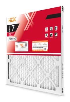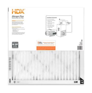 The HDX Allergen Plus is made of wire-backed pleated media with a large surface area which increases the filter's dust-holding capacity and improves its efficiency. The filter's media is charged electrostatically which means it captures and traps particles that would otherwise bypass the filter. The filter has a moisture-resistant, sturdy frame and lasts up to 90-days in a typical household environment. The HDX Allergen Plus is easy to replace making change-outs quick and keeping indoor air quality at its optimal level.