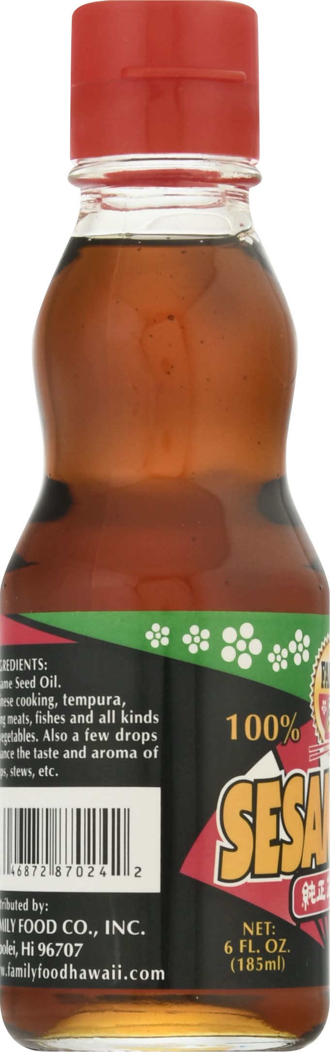 100% pure. Chinese cooking, tempura, frying meats, fishes and all kinds of vegetables. Also a few drops enhance the taste and aroma of soups, stews, etc. www.familyfoodhawaii.com. Product of Taiwan. Family Food Co., Inc., Kapolei, HI
