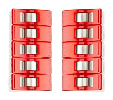 These clips are a great alternative to pins, especially when working with heavy weight fabrics, piles, and vinyls. Available in multiple counts. Includes storage case. Color: Red