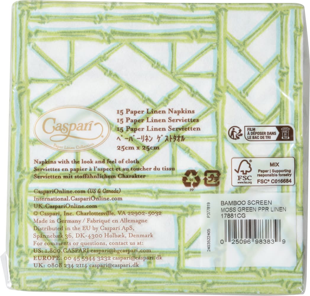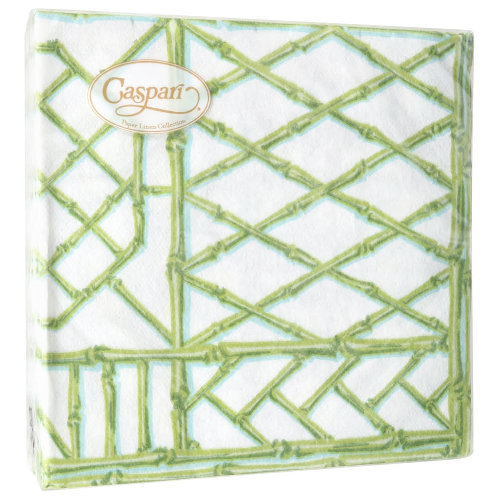 Caspari Bamboo Screen Moss Green Paper Linen Napkins (15 ct)