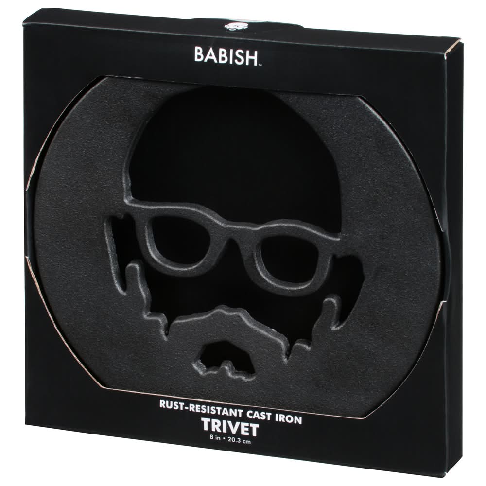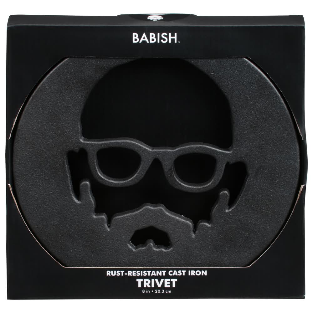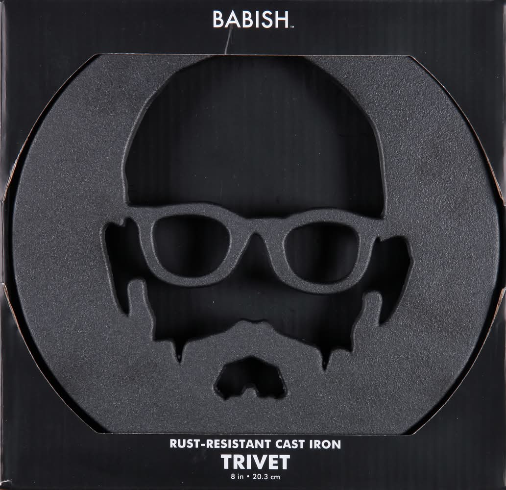 Rust-resistant cast iron trivet. 20.3 cm. www.bingingwithbabish.com/useandcare. YouTube. Facebook. Instagram. Twitter. For care and use of product please visit: www.bingingwithbabish.com/useandcare. Made in China. Babish,