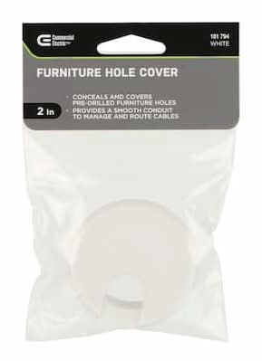 Commercial Electric's furniture hole covers are used to conceal or cover pre-drilled furniture holes that are not currently being utilized. These covers are designed to fit holes in desks, tables, cabinets or other types of furniture to provide a clean and finished appearance while hiding unsightly holes or gaps. By covering the hole, they prevent dust, dirt or small objects from falling into the opening, helping to keep the interior of the fu WARNING: Cancer and Reproductive Harm -- www.P65Warnings.ca.gov Color: White