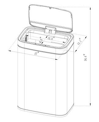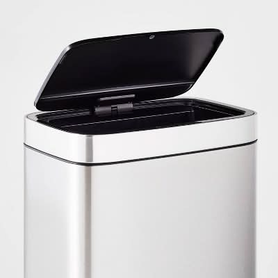 With the Motion Wastebasket with Liner from Brightroom, you don't have to worry about getting your trash can messy while you're cooking or baking. This kitchen wastebasket has two modes — manual and motion-activated — that you can switch between with a simple touch of a button. Set the trash can to manual mode to toss garbage throughout the day, then switch to activate the motion sensor when you're about to start cooking or baking so it opens on its own when you need to throw away egg shells, meat packaging or other messy items. The trash can has a fingerprint-resistant brushed stainless steel finish for a sleek look that perfectly balances its functionality. Brightroom started with a simple truth: When you’ve got it together, you feel better. Our versatile designs reveal the possibility in every closet, cupboard and drawer, and work together to create brilliant ways to organize your every day. Overall Width: 17 inches Overall Height: 25.5 inches Overall Depth: 11.1 inches Height of Trash Can with Lid Open: 34.4 inches Overall Width: 17 inches Overall Depth: 11.1 inches Width of Trash Can Opening: 13.5 inches Depth of Trash Can Opening: 6.5 inches