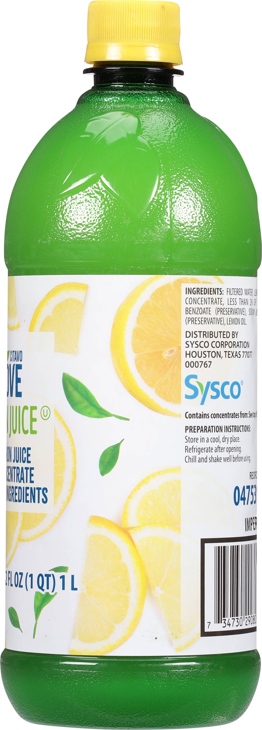 100% lemon juice from concentrate with added ingredients Contains concentrates from: See top of bottle. Sysco Corporation,