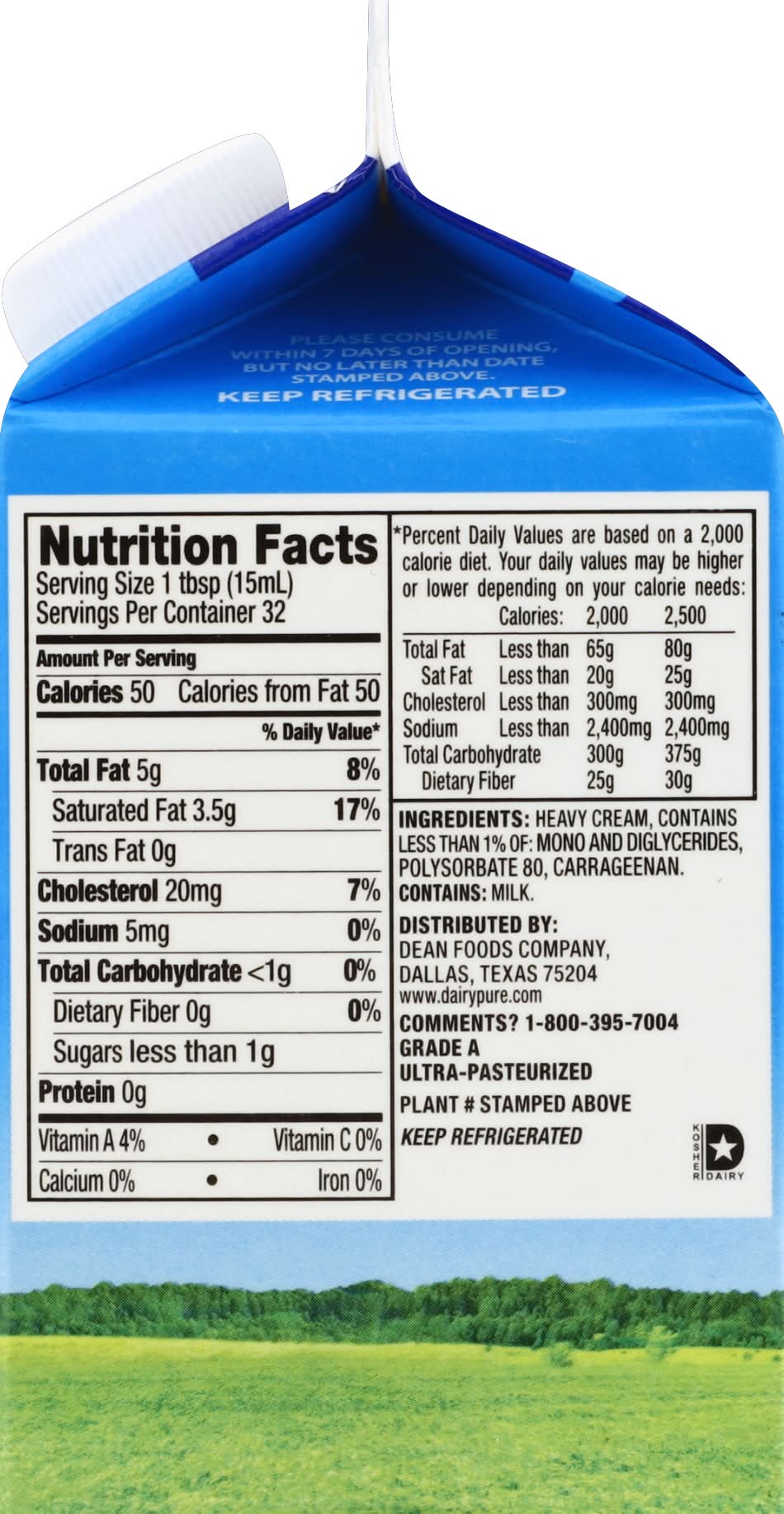 Heavy Cream, Contains Less than 1% of: Mono and Diglycerides, Polysorbate 80, Carrageenan. Contains: Milk