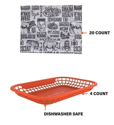 Spruce up your favorite meals by serving them on Burger Baskets with Basket Liners. These multipurpose baskets can be used to serve up Burgers and fries, sandwiches, breakfast dishes, and more! Cover the basket with the disposable liner, place the food on top, and once the meal is done simply dispose of the liner and place the basket in the dishwasher. A simple, fun way to bring the diner feel to your own backyard.