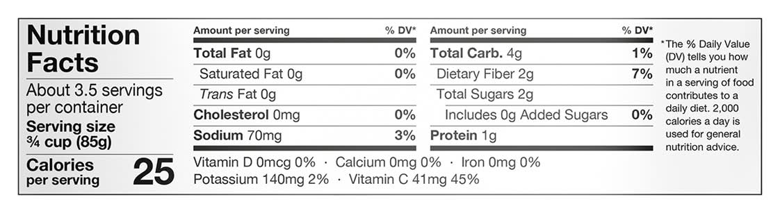 Organic Cauliflower, Sea Salt Contains: None Additives: None