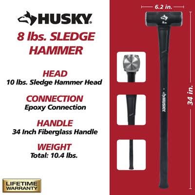 Husky Sledge Hammer With Fiberglass Handle, 34 in