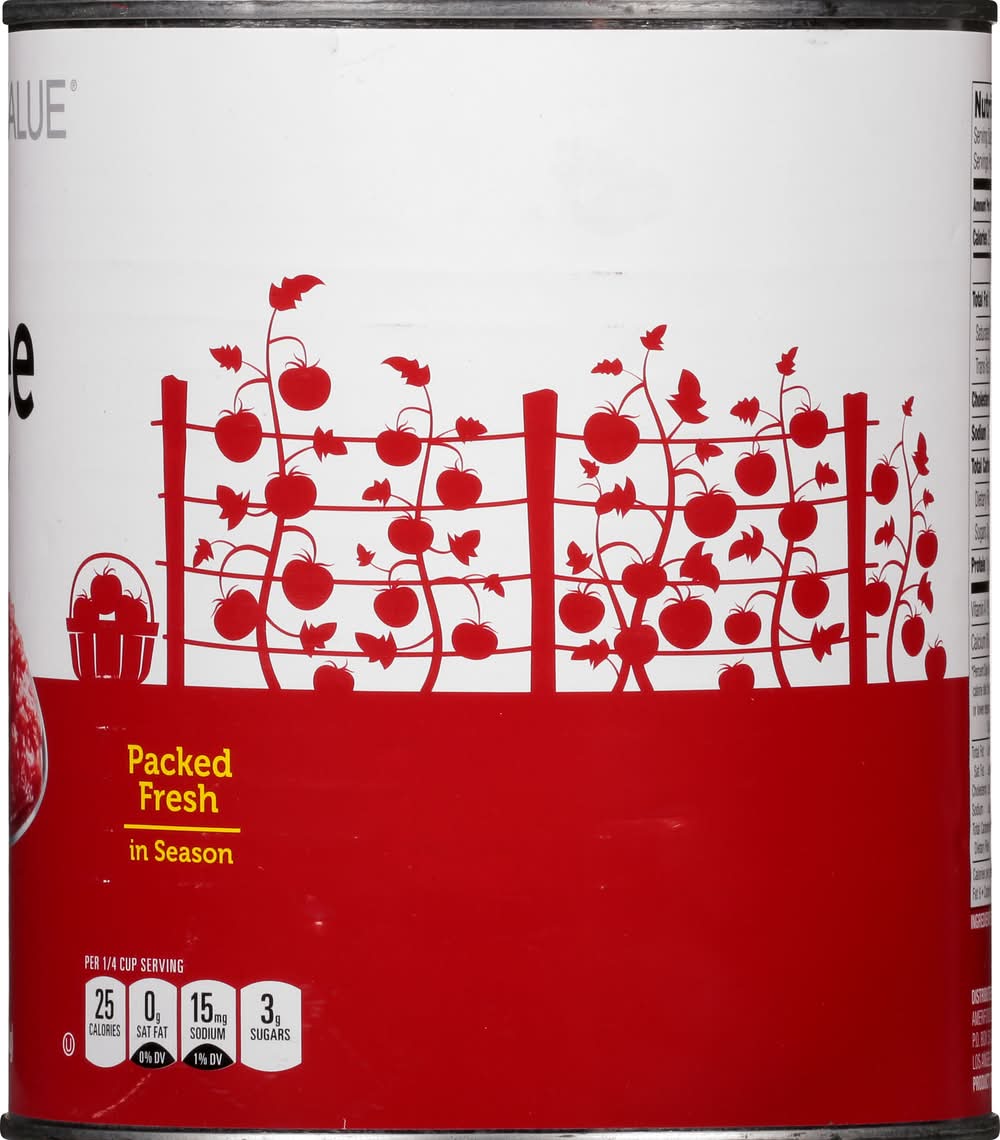 Per 1/4 Cup Serving: 25 calories; 0 g sat fat (0%DV); 15 mg sodium (1%DV); 3 g sugars. Packed fresh in season. We proudly feature California tomatoes that will aptly meet the needs of the value - minded chef. An economical puree that will do well in all of your pasta dishes. Ideal for sauces. Season with herbs and spices. Approximately 12 cups. Simply Value Guarantee: If for any reason you are not completely satisfied, return this product for a replacement or a full refund. Product of USA. Amerifoods Trading Co.,