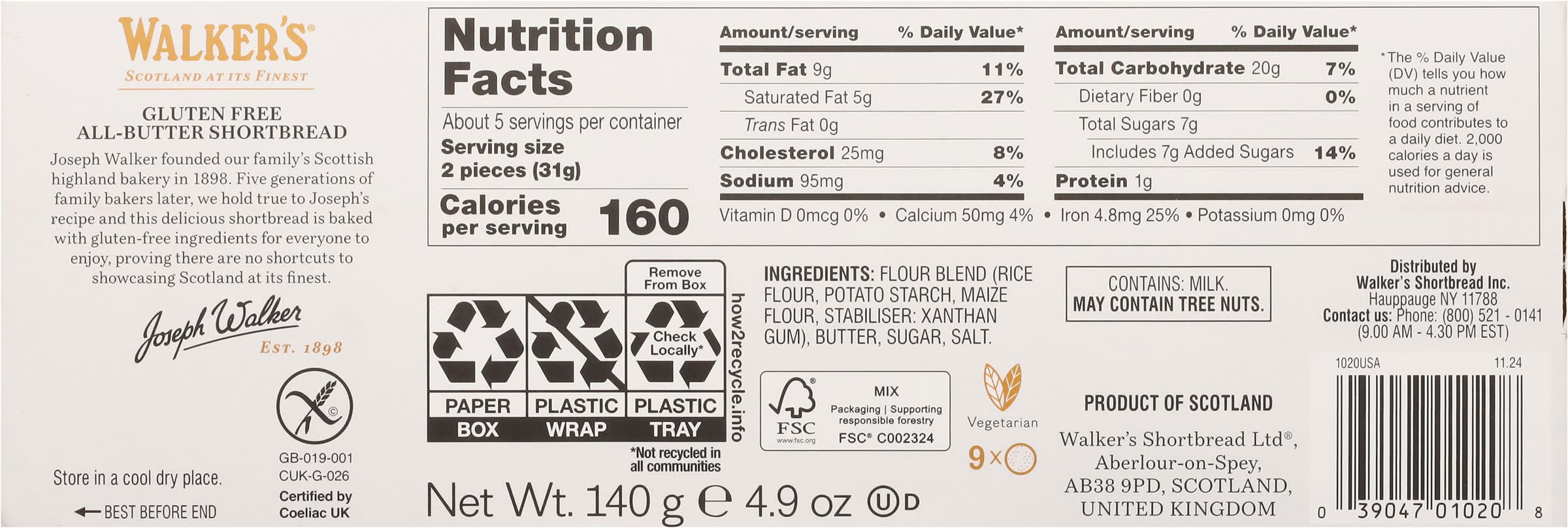 Walker's Gluten Free Pure Butter Shortbread (4.9 oz)