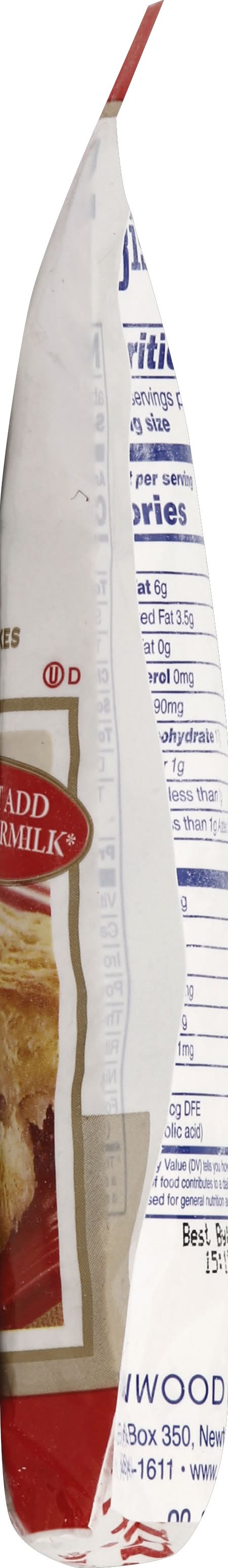 Enriched Bleached Wheat Flour (Contains Bleached Wheat Flour, Niacin, Reduced Iron, Thiamin Mononitrate, Riboflavin, and Folic Acid), Palm Oil, Leavening (Sodium Aluminum Phosphate, and Sodium Bicarbonate), Buttermilk, Salt, Sugar, Corn Starch, Soy Lecithin, Potassium and Sodium Caseinate (a Milk Derivative), Dipotassium Phosphate, Mono and Diglycerides, Artificial Butter Flavor, Beta Carotene (Color) Contains: Milk, Soybeans, Wheat