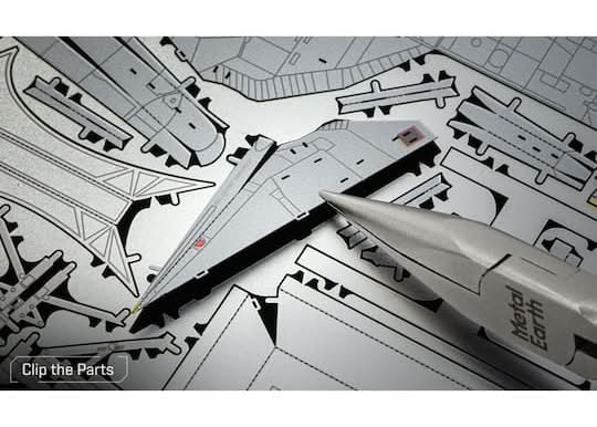 Recreate this amazing aircraft on a miniature scale with this steel model kit and then put it on display to enjoy. F-14 Tomcat design . 6.57" x 5.75" x 2.28" (16.69cm x 14.61cm x 5.8cm) finished project size . 76 pieces on 3 sheets . 1:130 scale . Challenging difficulty level .