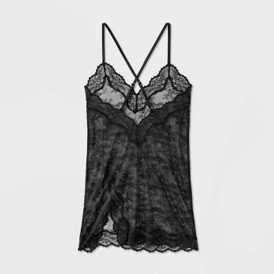 Feel gorgeous and glamourous throughout the day in this Allover Lace Lingerie Slip Dress from. This above knee length lingerie slip dress is made from soft stretchy sheer fabric with a single layered construction to help keep you comfy from day to night while the delicate lace design and side slit elevate the look. Adjustable straps and crisscross back make it easy to find the perfect fit.