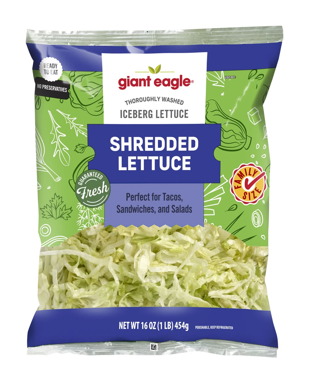 Giant eagle shredded iceberg lettuce,16oz, family size.