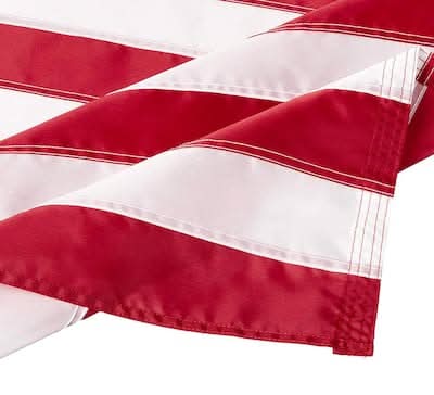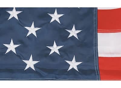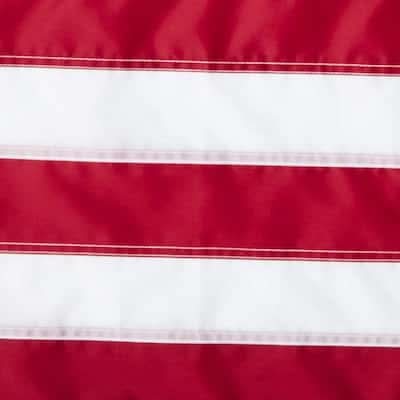 The 3 ft. x 5 ft. United States flag from Seasonal Designs is made of nylon and features sewn stripes and embroidered stars. It has a quadruple stitch on the fly end with double tack down on the corners. The canvas header with brass grommets provides long-lasting strength. Size: 3 Ft. X 5 Ft