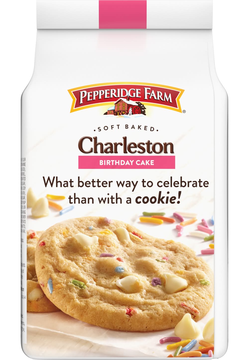 These delicious Charleston Cookies are baked with rich, white chocolate chips and colorful sprinkles, and the result is simply delicious. Satisfy your most decadent cookie cravings with soft and sweet cookies that are perfect for a midday treat or to serve at your next get-together or celebration. Charleston Birthday Cake Soft Baked Cookies per bag, there’s always enough to share. And what better way to celebrate than with a cookie! For , baking is more than a job. It's a real passion. Each day, our bakers take the time to make every cookie, pastry, cracker, and loaf of bread the best way they know how – by using carefully selected, quality ingredients. With comforting goodness baked into everything . • Flavor: Birthday cake • Packaging: Reusable