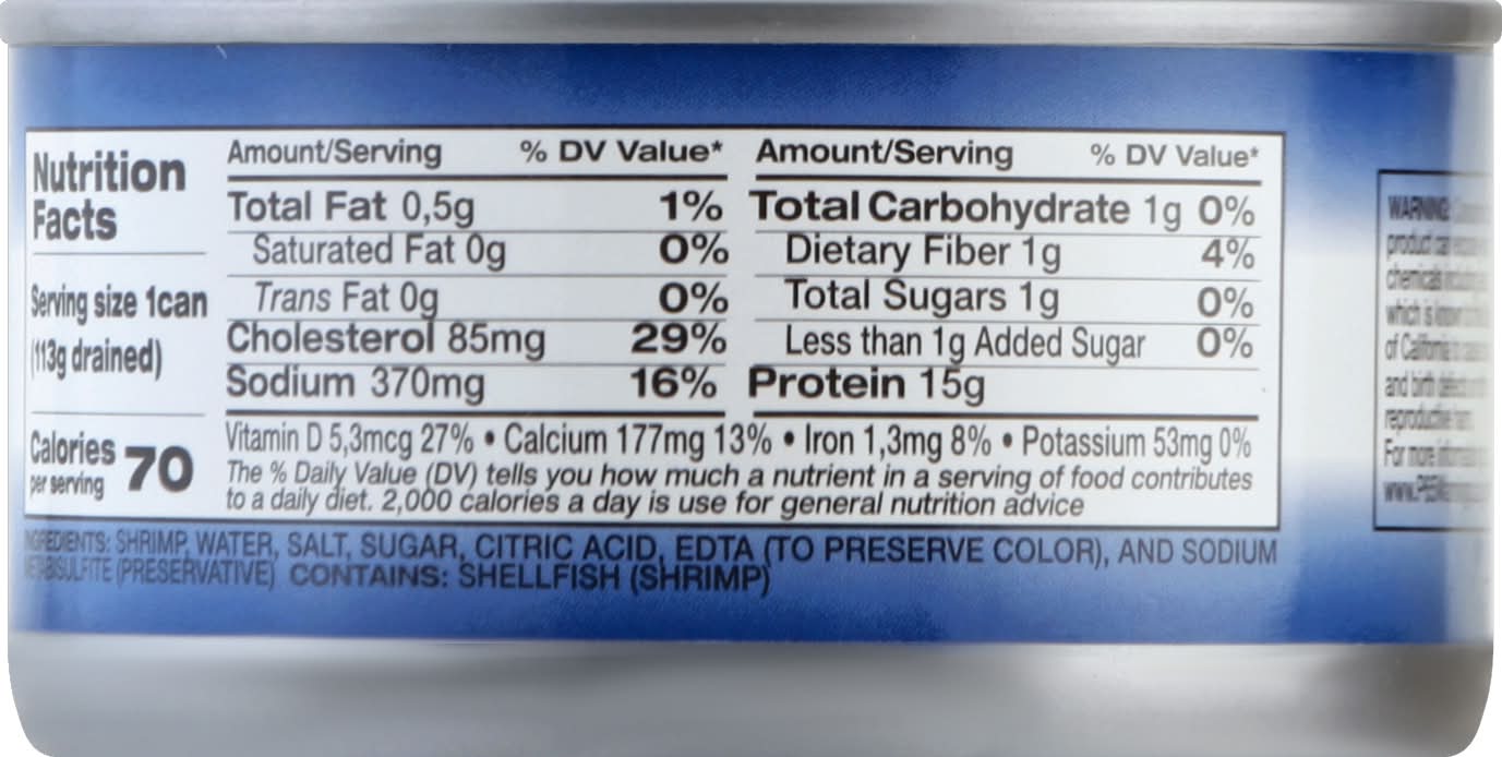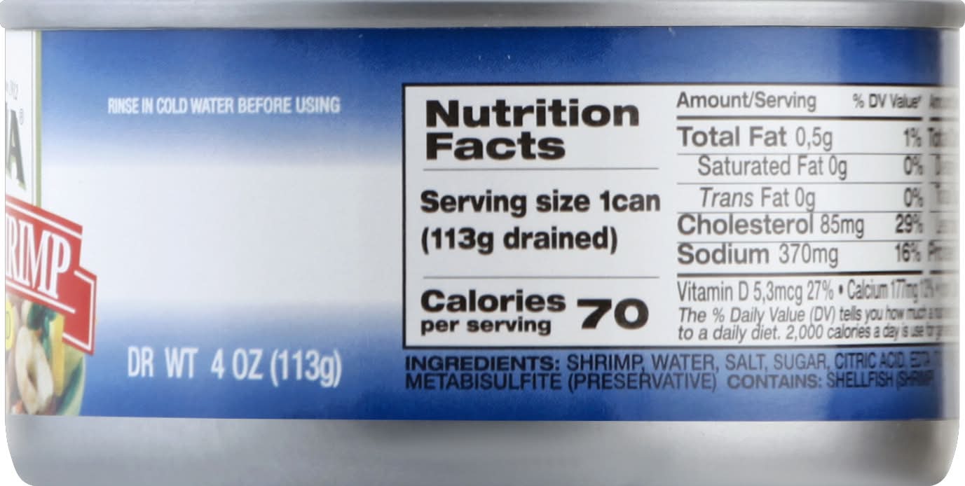 Shrimp, Water, Salt, Sugar, Citric Acid, EDTA (to Preserve Color), and Sodium Metabisulfite (Preservative)
