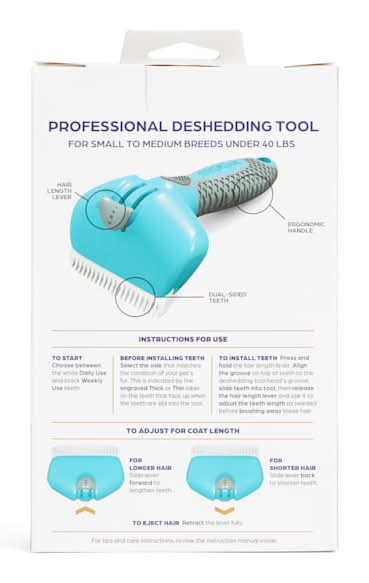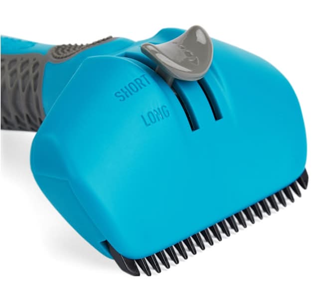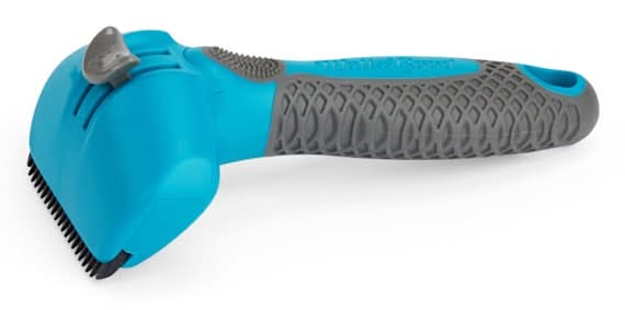 It is a stroke of genius that safely extracts loose hair so their coat can thrive in its natural state of shine. This metal-free tool allows you to achieve a successful year-round deshedding routine with flexible teeth to use on the daily and firm teeth for a deeper weekly grooming session. Perfect for all types of fur, both dual-sided teeth can be flipped to brush thin or thick strands to a hair-flip-worthy status.