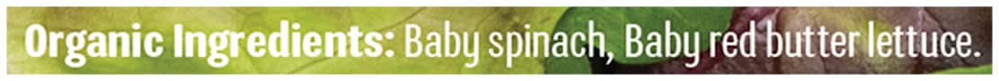 Ingredients: Organic Ingredients: Baby Spinach, Baby Red Butter Lettuce