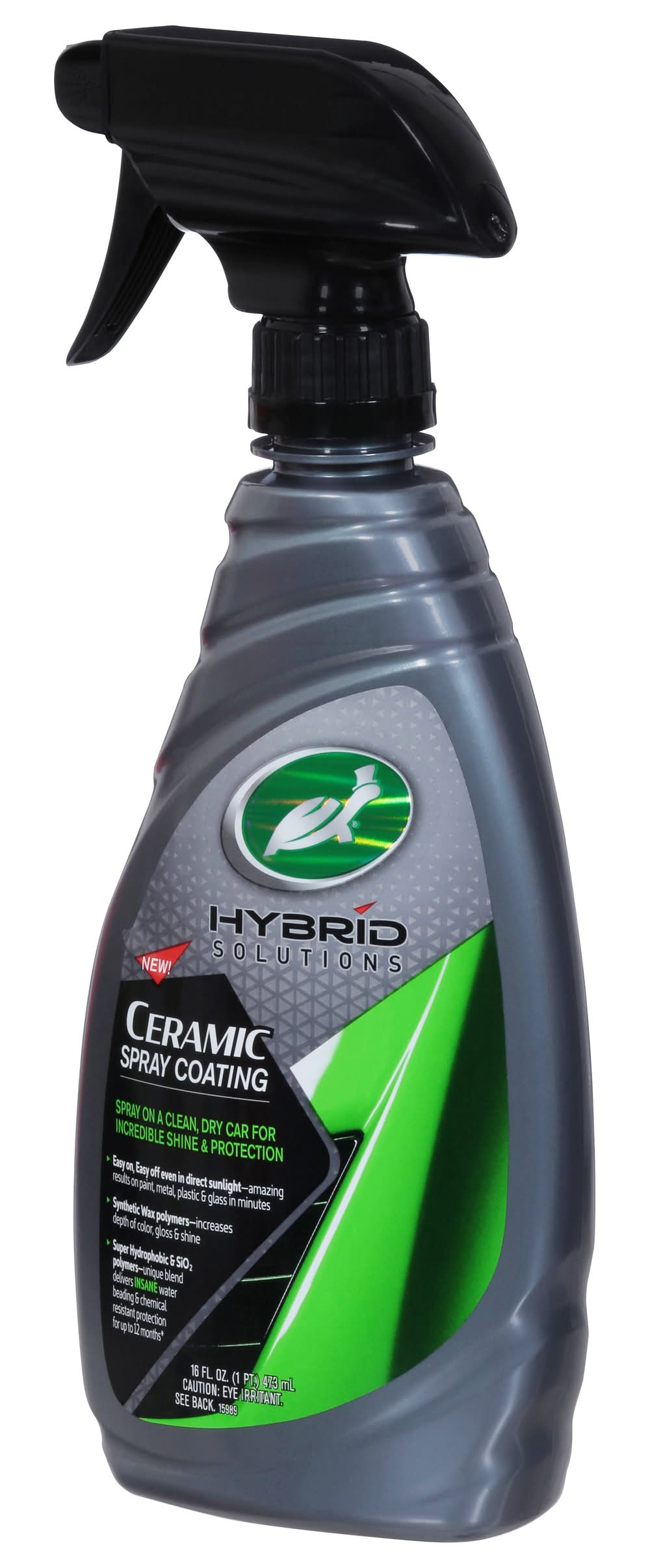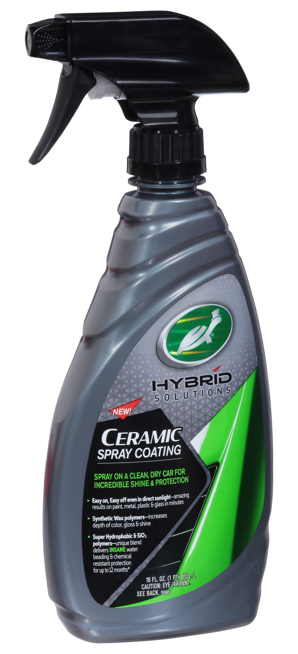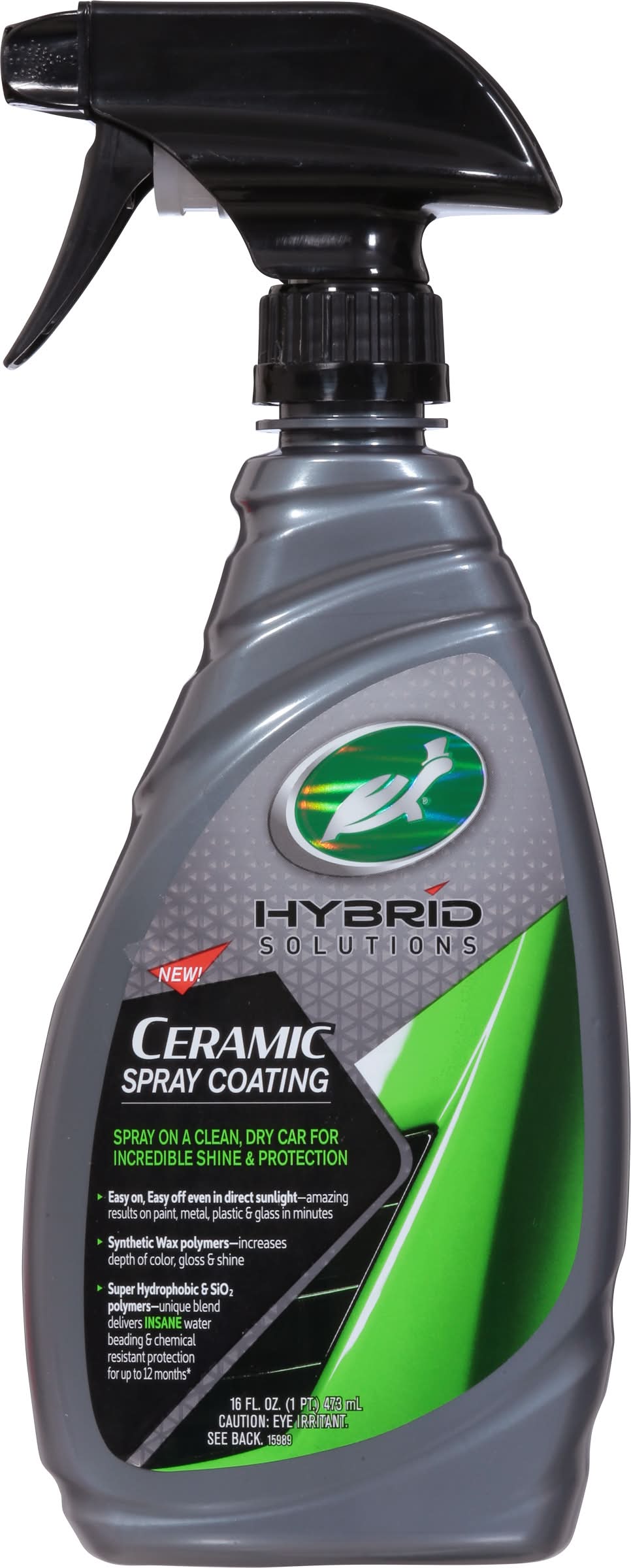 New! Spray On A Clean, Dry Car for Incredible Shine & Protection: Easy on, Easy off even in direct sunlight - amazing results on paint, metal, plastic & glass in minutes. Synthetic Wax polymers - increases depth of color, gloss & shine. Super Hydrophobic & SiO2 polymers - Unique blend delivers insane water beading & chemical resistant protection for up to 12 months (For best performance paint should be free of oxidation and surface contaminants. Clay or polish finish first if needed. Apply a second coat for 12 months of protection. Use a damp microfiber cloth to remove high spots/streaking). Incredible coating can help surfaces stay cleaner longer. Superior shine, glass, and depth of color from synthetic wax. Durable protection from SiO2 infusion. Repel Water & Contaminants with super hydrophobic polymers. www.turtlewax.com. Connect with car care experts: www.turtlewax.com. 1-800-887-8539. Made in USA.