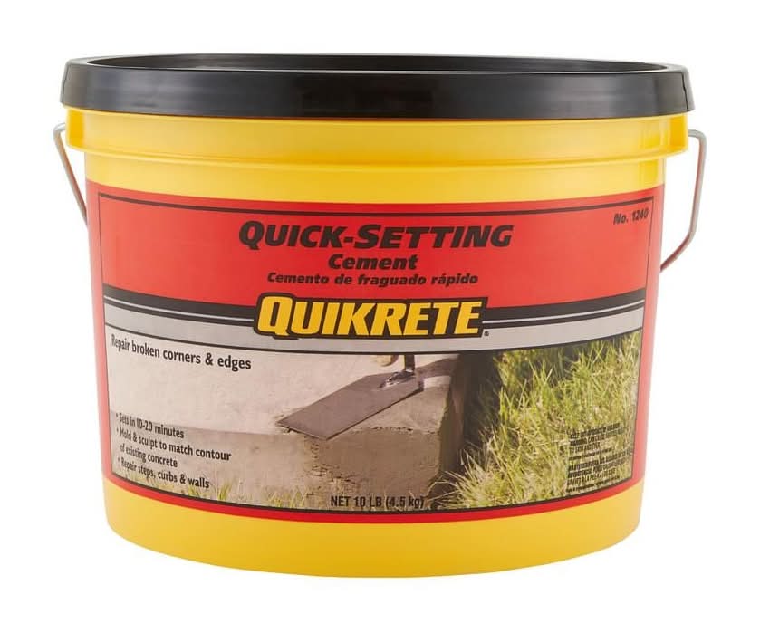 Quikrete 10 lb. Quick-Setting Cement is a very fast setting concrete repair product. This product has the unique characteristic of being able to be sculpted and molded as it sets. The set time for this product is 10-15 minutes. Quikrete 10 lb. Quick-Setting Cement is perfect for making repairs to the edges of curbs and concrete steps. Cancer and Reproductive Harm – www.P65Warnings.ca.gov.
