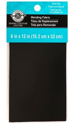 Mend rips and tears in your jeans or jackets with this easy-to-use iron-on fabric by Loops & Threads. • Color: Black • Size: 6 x 13 inch