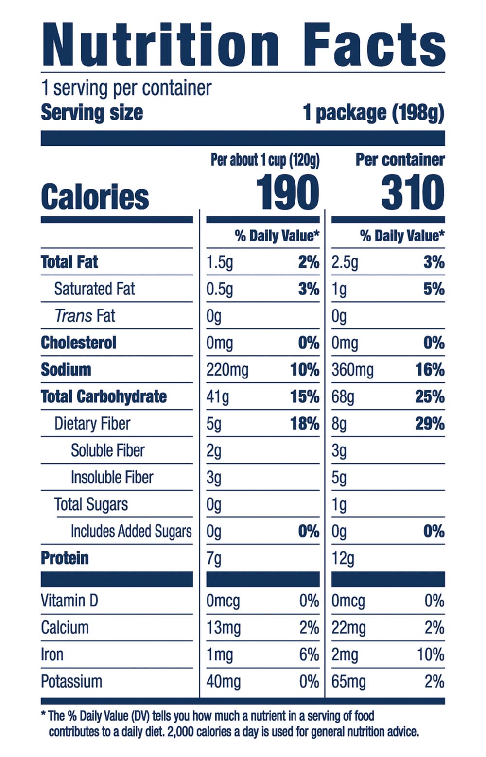 Non-GMO Project verified. nongmoproject.org. Fully cooked. Al dente perfection in 60 seconds! No preservatives. barilla.com. Call 1-800-922-7455 with any comments or questions. Pouch made without BPA. Package produced without the intentional addition of BPA. Made in the U.S.A. with U.S.A. and imported ingredients. Packaging: Reusable