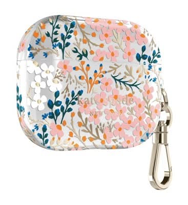 Keep your AirPods close by and looking new with the kate spade new york AirPod case. Chic and sleek, its thin urethane construction adds a welcome layer of bulk-free protection to fend off scrapes, scratches and scuffs, while the premium kate spade new york pale gold clip fastens easily and securely onto a purse, keyring, handbag, etcetera for easy access and peace of mind. This AirPod case is compatible with AirPod Pro (2nd generation). Color: Floral/rose