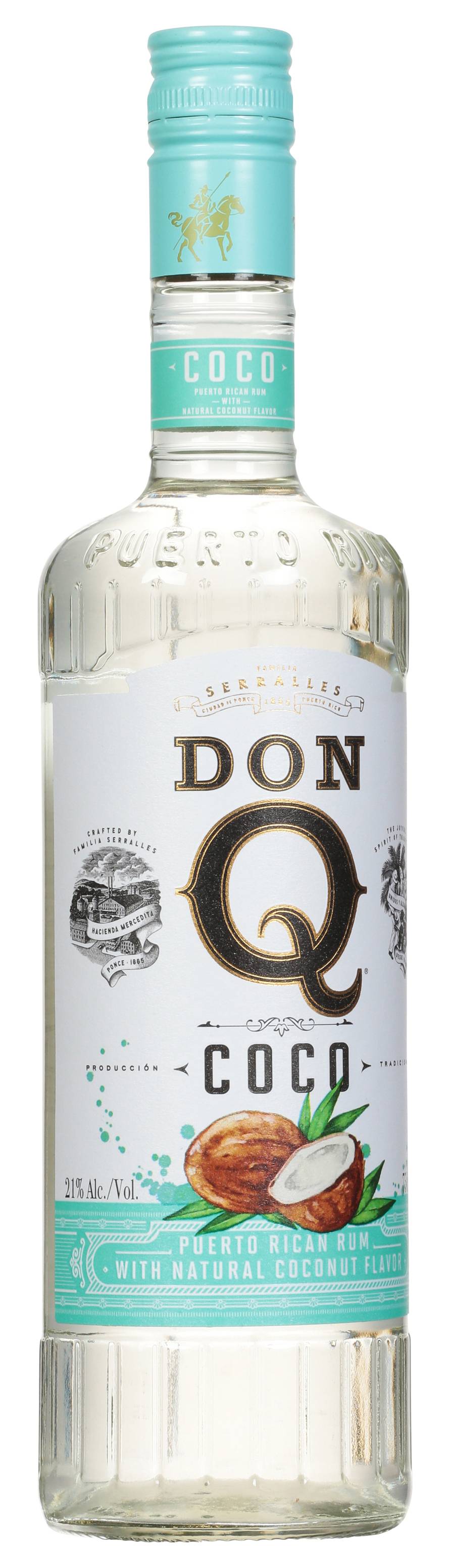 Familia Seralles. Ciudad ponce 1865 Puerto Rico. Crafted by Familia Seralles. The joyful spirit of tradition Unidos Y Alegre Desde 1865. A family legacy since 1865. Coconut tropical smooth. Crafted with premium Don Q Rum and blended with natural essential flavor and extraction of real coconut. Don Q Coco sets a new bar in coconut rum flavor and is perfect for mixing with natural juices like pineapple, for a lighter pina colada and other tropical drinks. Enjoy! Superior product. Healthy ecosystem. Celebrate the joy of life - drink responsibly. donq.com. Visit us at donq.com for more delicious cocktail recipes. 21% alc/vol. 42 Product of Puerto Rico. Produced by Destileria Serrales, Inc. Ponce - Puerto Rico. • Alcohol by volume: 21% • Destileria Serralles, Inc., • Packaging: Reusable