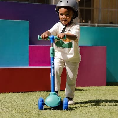 First, they test it out down the hallway. Then, it’s out onto the driveway. Before you know it, they’re asking to ride their Jetson Gem 3 wheel kick scooter everywhere – because once they get the hang of it, riding this kick scooter is just plain fun. It’s a quick path to scooter comfort and confidence on the Gem, thanks to how smoothly it rolls and how stable kids feel on its sturdy 3-wheel base. Once momentum picks up, the lean-to-steer turning functionality comes easy, as does using the rear foot brake. When growth spurts happen, the handlebar can be raised to several different heights. Bright and joyful in color, the wheels also have a fun surprise: motion-activated LED illumination, which lights up sidewalks and smiles. (No batteries required!) Perfect for preschoolers, the Gem is recommended for ages 3 and up. Color: Blue-green