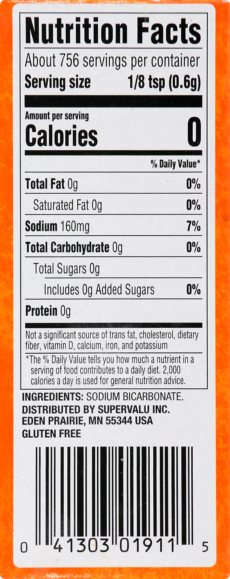 Per 1/8 tsp: 0 calories; 0 g sat fat (0% DV); 160mg sodium (7% DV); 0 g total sugars. Gluten free. Baking cleaning deodorizing. Great product at a price you'll love - that's Essential Everyday. Our goal is to provide the product your family wants, at a substantial savings versus comparable brands. We're so confident that you'll love Essential Everyday, we stand behind our product with a 100% satisfaction guarantee. 100% Quality Guaranteed: Like it or let us make it right. That's our quality promise. essentialeveryday.com. • Number of servings: 756 • Supervalu, Eden Prairie, MN, 55344