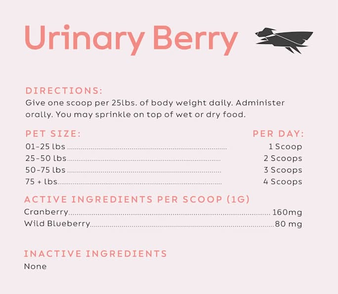 Urinary Berry is for cats and dogs of all ages and sizes who experience occasional urinary flow challenges. Helps to maintain normal urine pH and promotes normal bladder and kidney function. Size: 0.17 lb