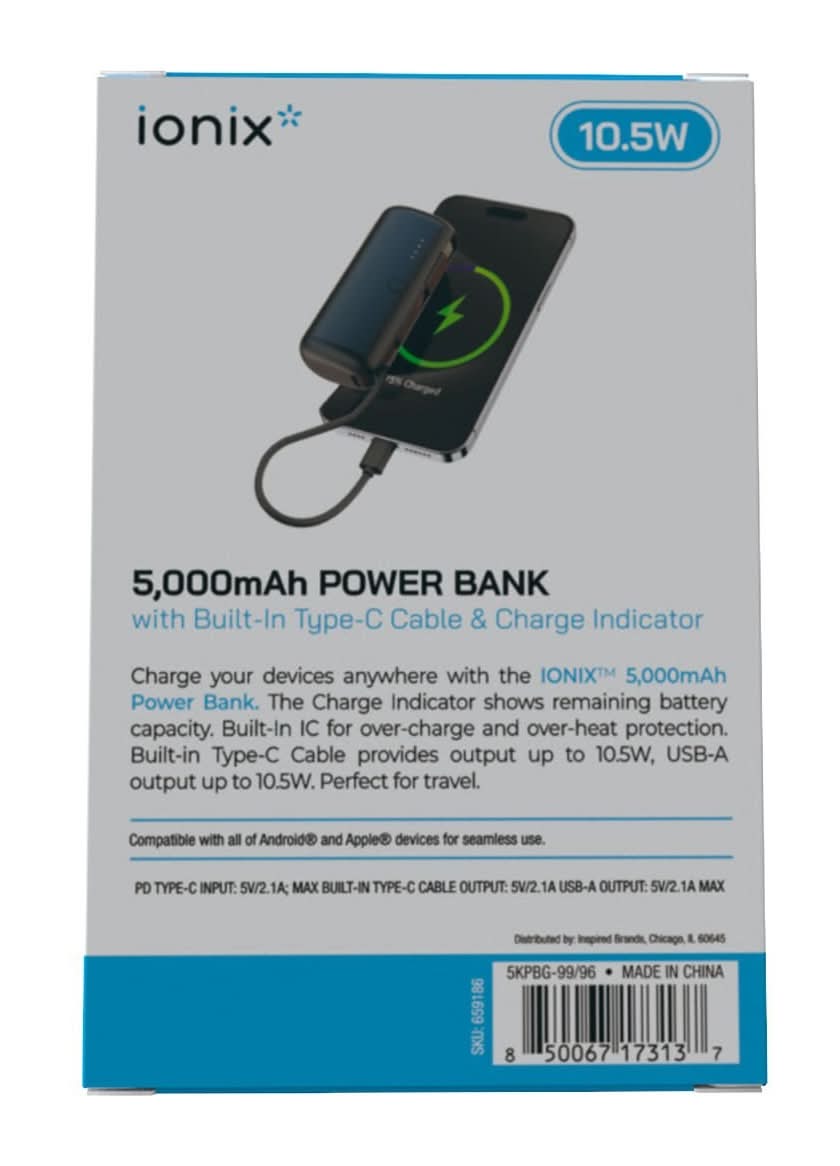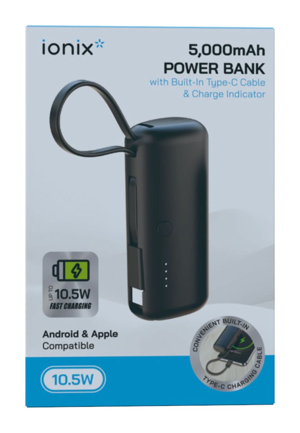 Ionix 5000Mah Powerbank + Built-In Type C Cable, Assorted